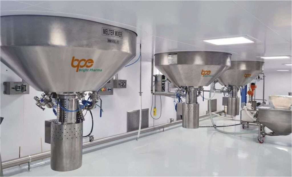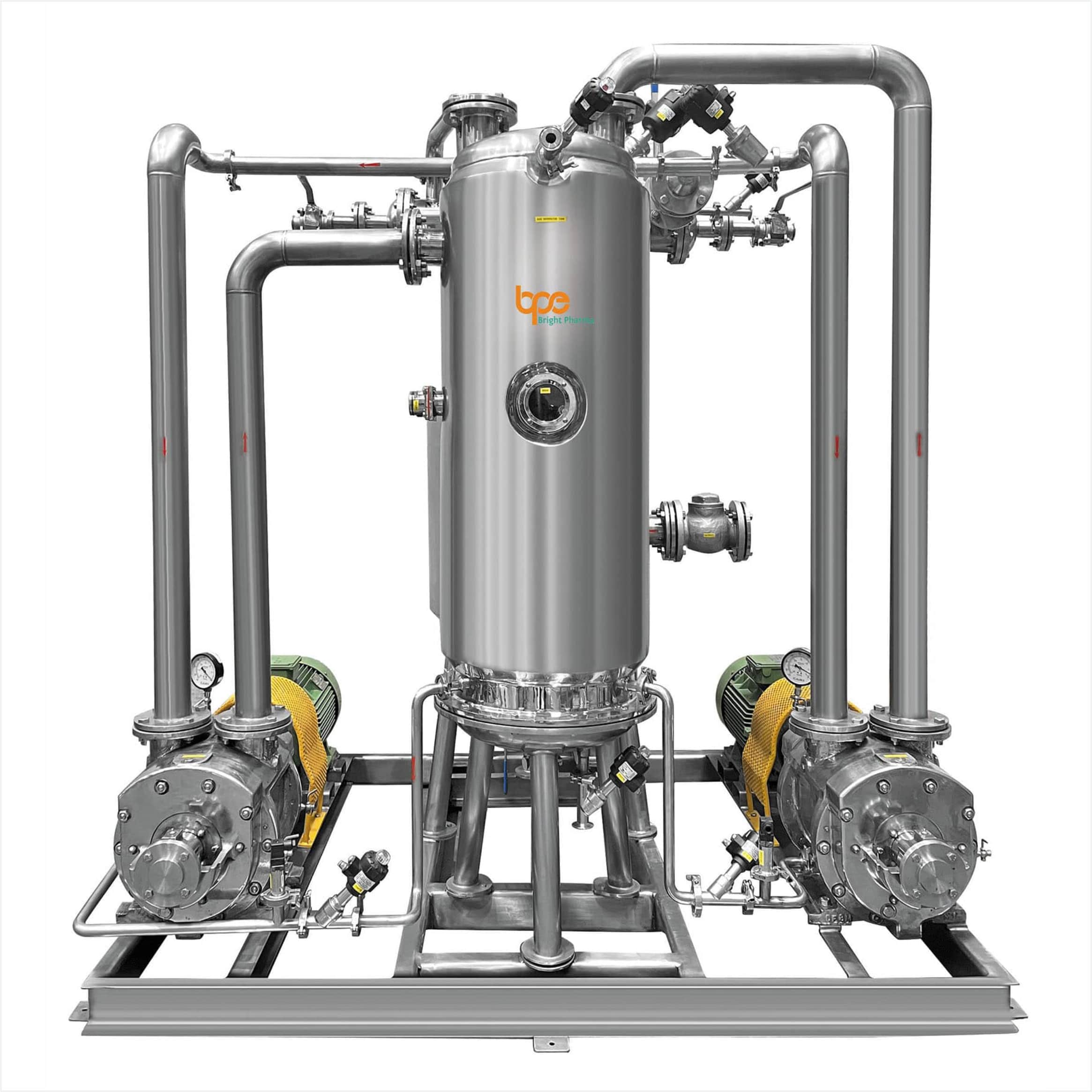 - Equipped with a vacuum system, including a receiver and gas separator, for charging slurry and gelatin into the manufacturing vessel. This system removes air bubbles from the gelatin product using foaming and deforming methods, reducing process cycle time and improving product efficiency.